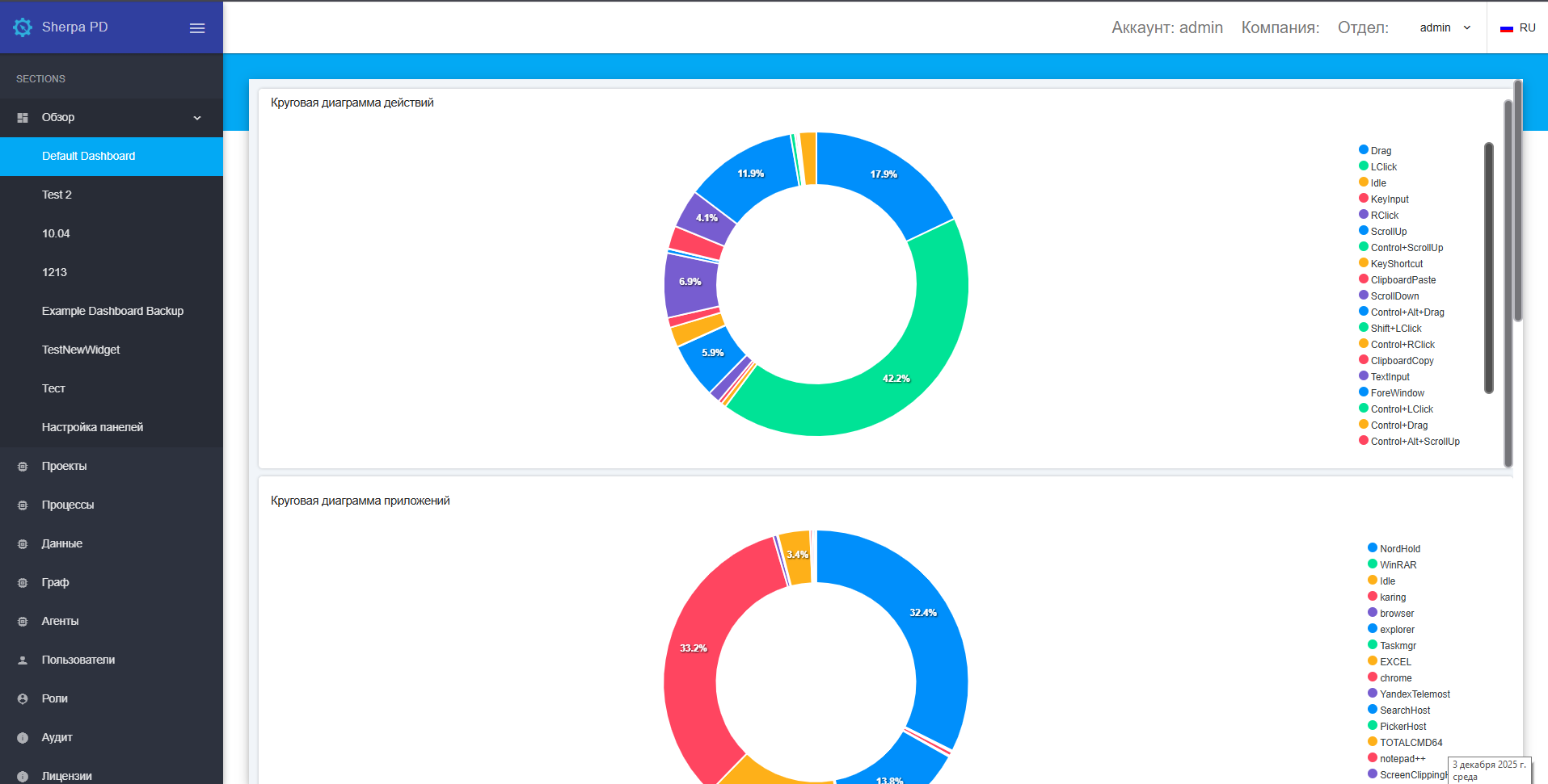 - Статистика использования приложений, браузеров, мессенджеров и любых корпоративных систем;