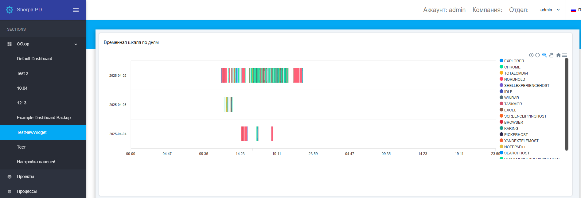- Таймлайн рабочей недели сотрудников в разрезе бизнес-процессов;